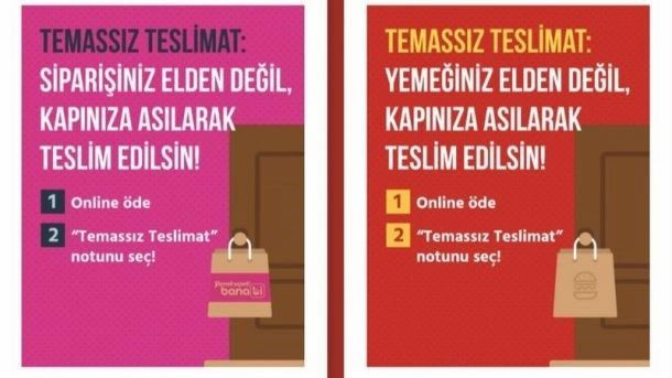 Birçok insan corona virüsün sosyal etkileşimle yayılmasını azaltmak için evlerinde kalmayı tercih ediyor. Kullanıcıların ve çalışanların sağlığını korumak amacıyla bazı şirketler bir dizi önlemi hayata geçirmeye başladı. Yemeksepeti ve Banabi platformlarının temassız teslimat seçeneği sundu.