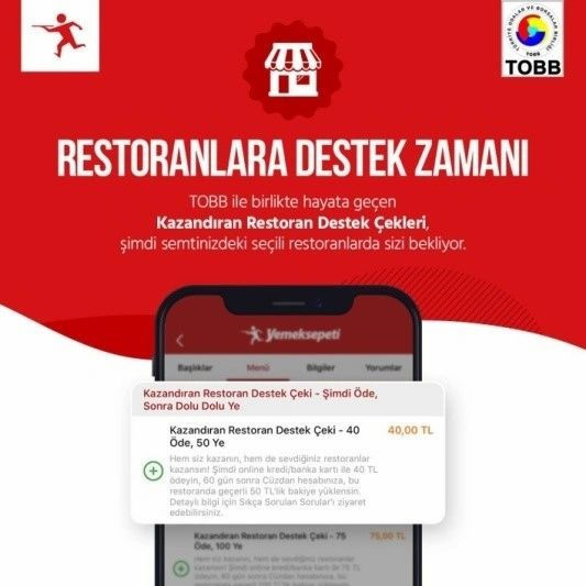 Yemeksepeti TOBB işbirliği ile ‘kazandıran restoran çeki’ projesini de sosyal medya üzerinden duyurdu. Proje bu zor zamanda restoranlara destek olmayı amaçlamaktadır. Bu dönemde restoranların masa müşterisi bulunmadığından dolayı restoranları geliri azalmış durumdadır ve bu proje ile şu an sipariş verilmese dahi favori restoranlardan kullanıcılar çek alımında bulunarak restoranlara destek olabilir.